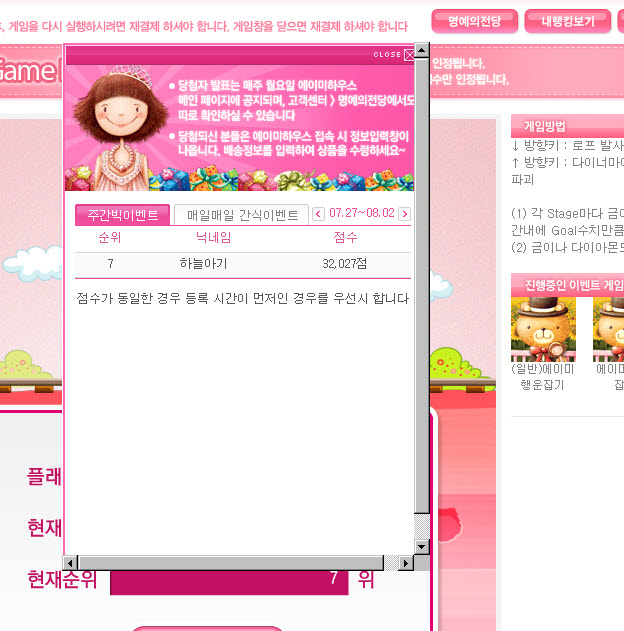 내 랭킹보기를 클릭하니 스크롤바가 없어지질 않는군요.