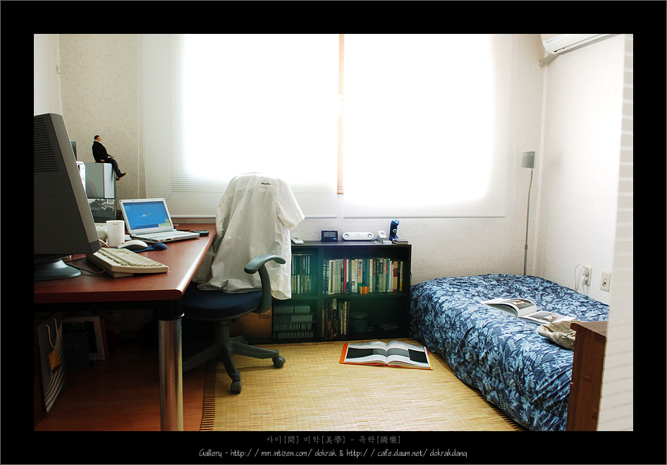 간밤에 읽다 잠들어 버린 책들이 머리맡에 뒤엉켜 있고... 눈을 뜨자 마자 주섬 주섬... 비틀 비틀 가스레인지로 향하여 주전자에 물을 채우고 요란하지만 경쾌한 가스레인지 불당기는 소리를 내고나서야 비로서 정신이 돌아 온다...