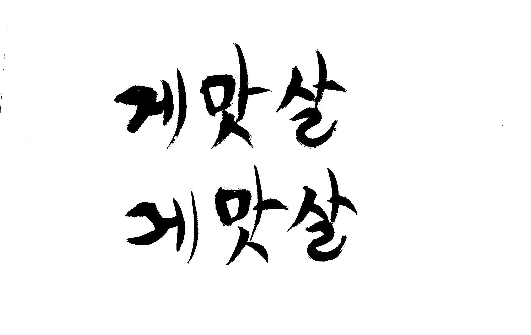 캘리 부탁드립니다. 김철호 일반 0 6278 2009.01.30 09:49 > > 제가 이리저리 써보기도 했으나 너무 이상해서 도움을 받고자 합니다. > 단어는 '게맛살' 입니다. 패키지디자인에 사용할 타이틀입니다. > 급한사항이니 부탁드립니다. 감사합니다. ^^ >